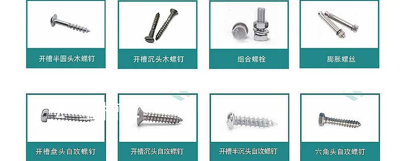 有圓頭(半圓頭)、 扁圓頭、圓頭凸緣(帶墊)、扁圓頭凸緣(帶墊)、盤頭、盤頭凸緣(帶墊)、沉頭、半沉頭、圓柱頭、球面圓柱頭、喇叭頭、六角頭、六角法蘭頭、六角凸緣(帶墊)等等。扳擰方式—扳擰方式五花八門。 開槽(錐端 圓柱端 盤頭 圓柱頭 球面圓柱頭)D.不脫出螺釘 (M3~M16)開槽 (盤頭 沉頭 半沉頭)六角頭 滾花頭 E.自攻螺釘和木螺釘 (ST2.2~9.5 木:1.6~10)十字 (盤頭 沉頭 半沉頭)開槽 (盤頭 沉