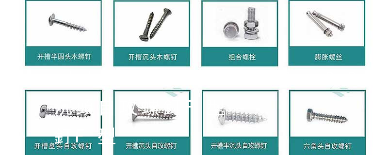 平杯)、半圓頭內(nèi)六角螺釘(圓杯)、十字槽盤頭機螺釘、十字槽沉頭機螺釘、十字槽大扁頭機螺釘、十字槽盤頭自攻釘、十字槽沉頭自攻釘、十字槽大扁頭自攻釘、全牙絲桿(牙條)、六角螺母、法蘭螺母、尼龍螺母、蓋型螺母、蝶型